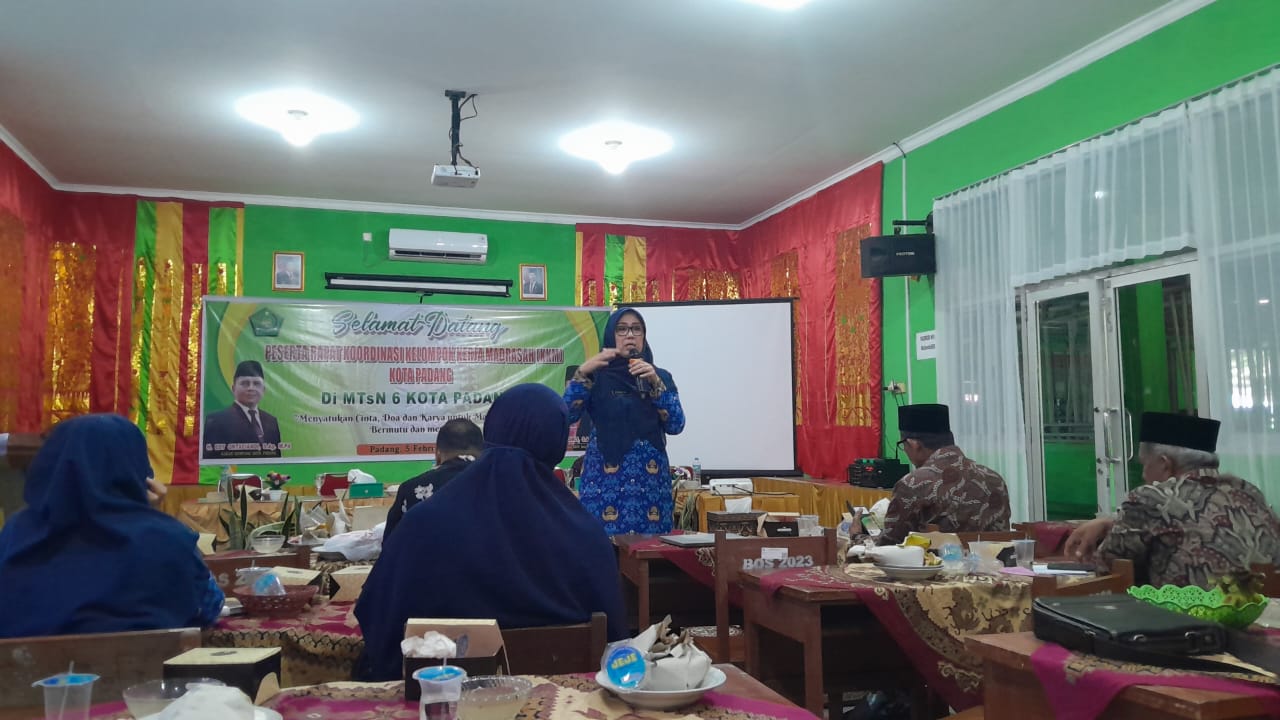 Padang, Humas - Ketua Forum Pendidik Madrasah Inklusi (FPMI) Sumatera Barat, Nurhidayati, memberikan sosialisasi tentang Madrasah Inklusi pada forum Kelompok Kerja Madrasah (KKM) Kota Padang, Kamis, 5 Februari 2026. Kegiatan ini diikuti oleh para kepala madrasah dan perwakilan guru dari berbagai jenjang madrasah di Kota Padang sebagai upaya memperkuat pemahaman dan komitmen terhadap pendidikan inklusif.